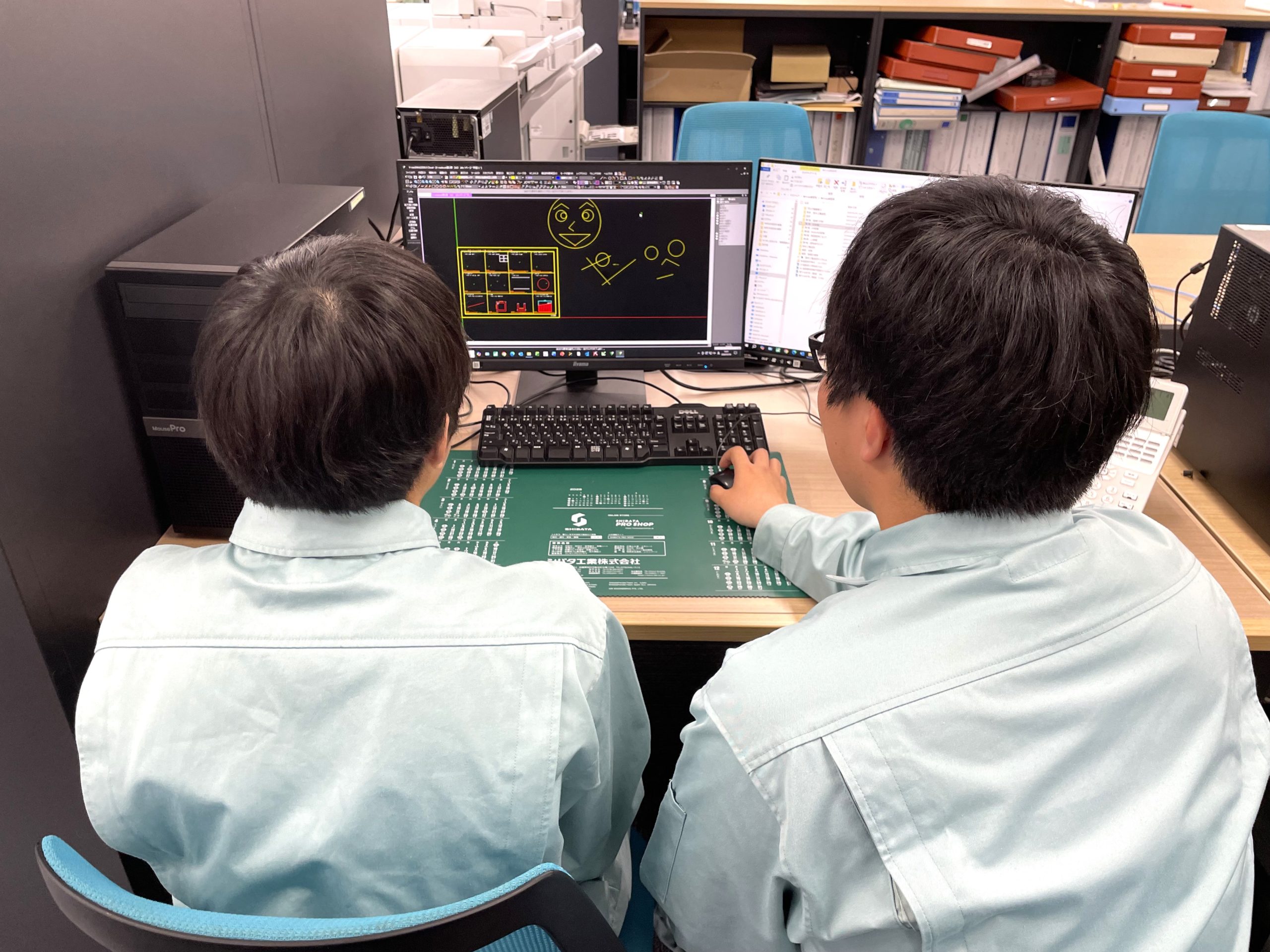 午後からは、技術第一課および技術第二課の業務内容について説明を行い、CADを使ってキャラクターを描く課題にも取り組んでいただきました。